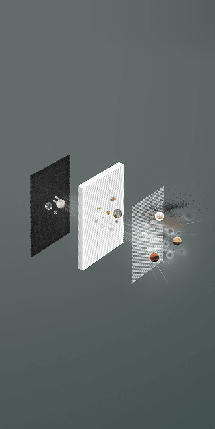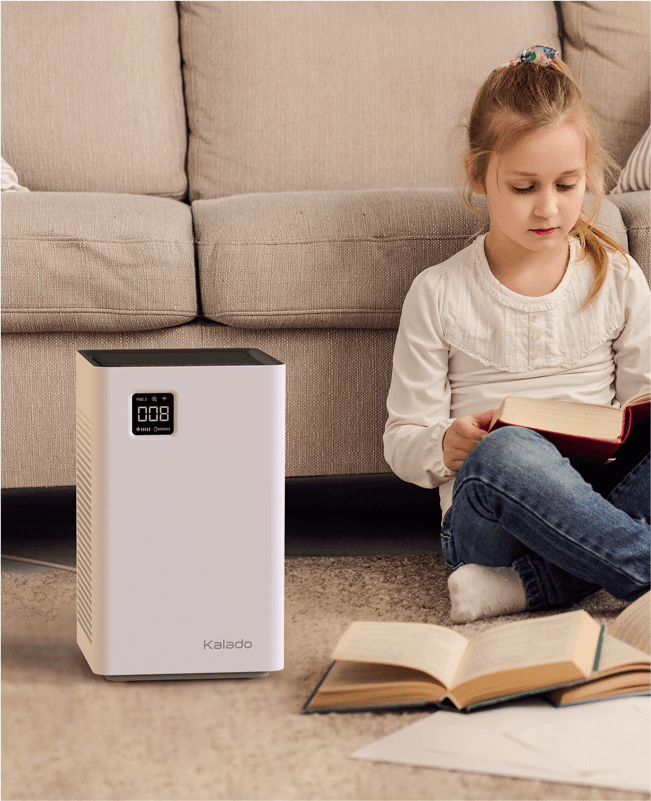 First the air passes the primary filter screen removing large particles, then through a true HEPA H13 high-efficiency filter screen to filter 0.3 particles. the success rate of removing microparticles from your air is higher than 99.97%; Finally, the activated carbon filter screen adsorbs formaldehyde, TVOC, odor, etc, Layer by layer efficient filtration and comprehensive purification is achieved.